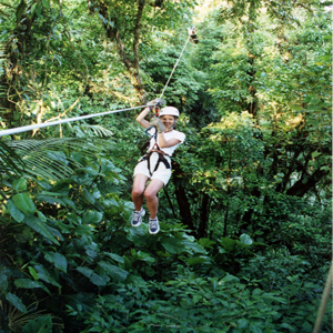 a secluded mountain waterfall. Take the zip-line canopy ride gliding from